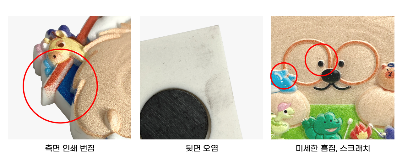 ※ 입체 금형 후 인쇄되는 제품 특성상 측면의 인쇄가 번져보일 수 있습니다.