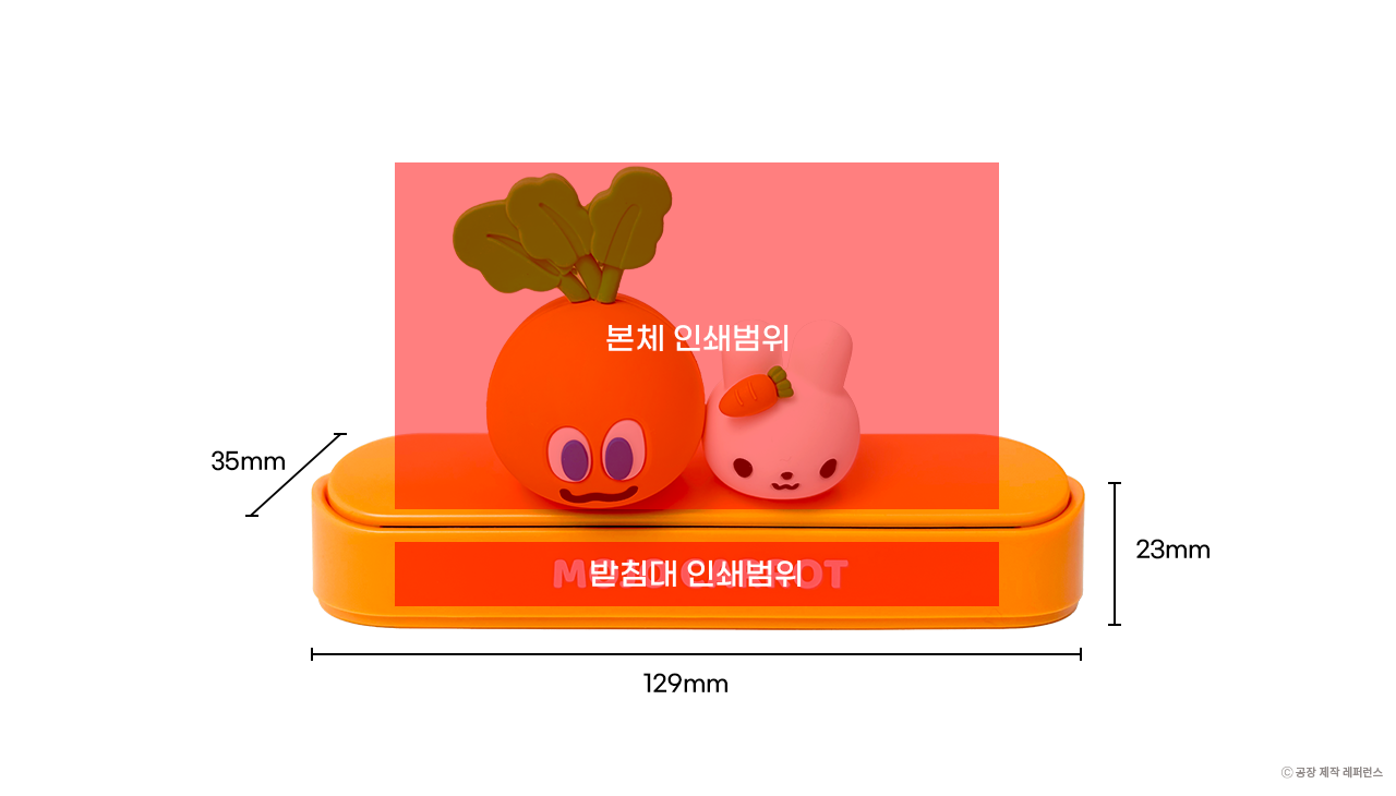 - 크기: (받침대) 가로 129 x 세로 35 x 높이 23mm (본체 사이즈, 디자인 커스텀 가능)