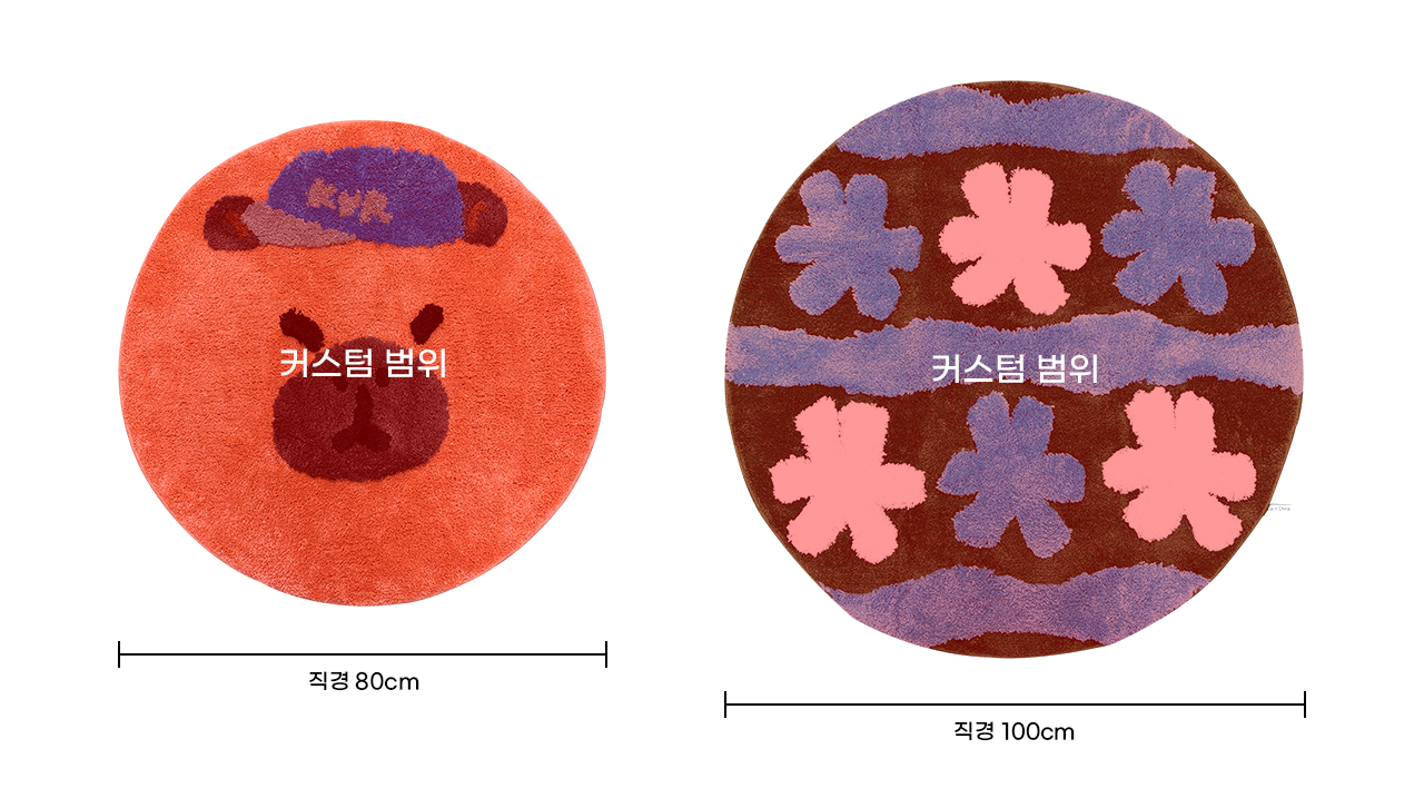 | 터프팅 발매트 | 직경 80cm or 100cm | 커스텀 범위 이내 |