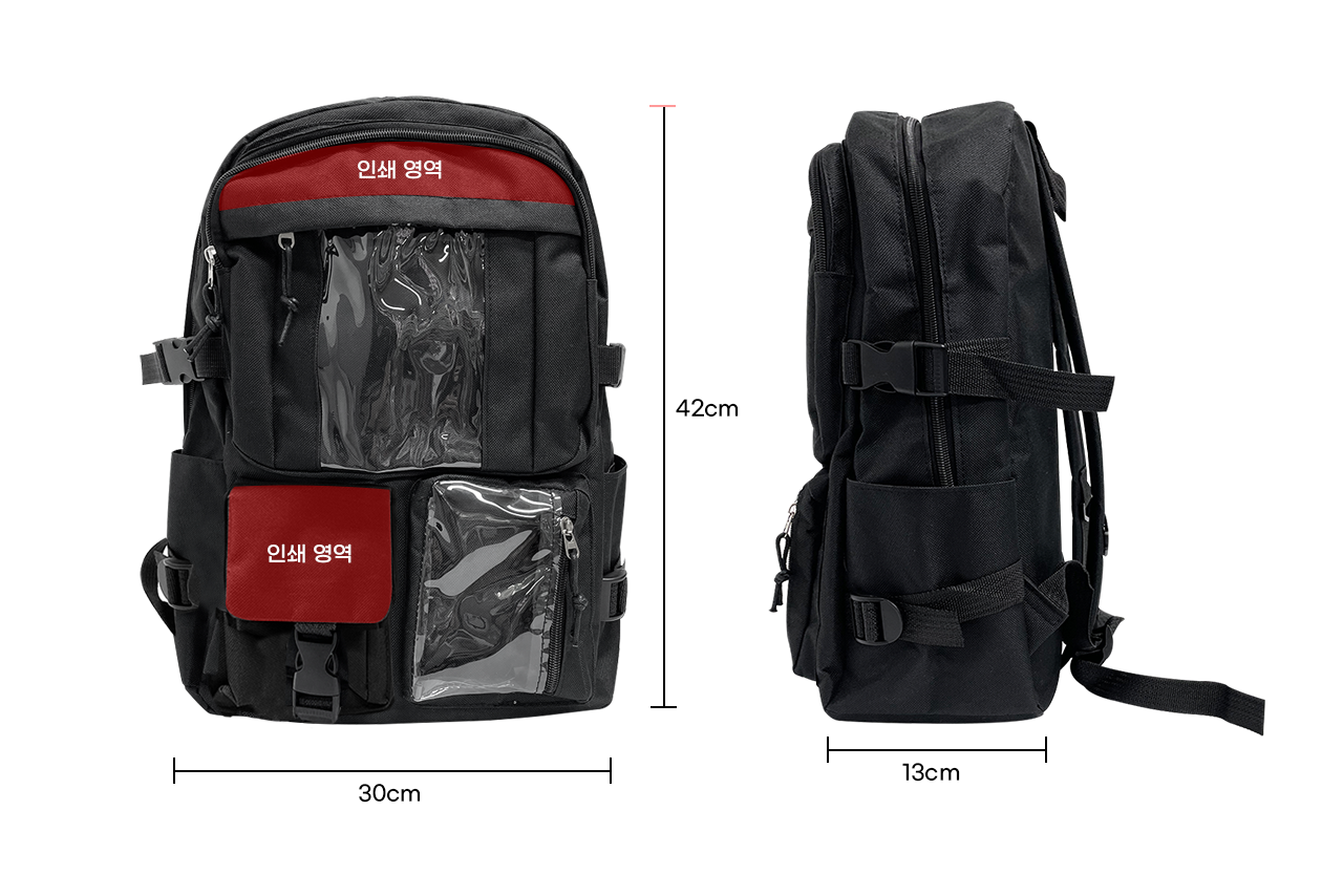 투명 포켓 커스텀 이타백 백팩 | 30 x 42 x 13cm | 템플릿 참고 |