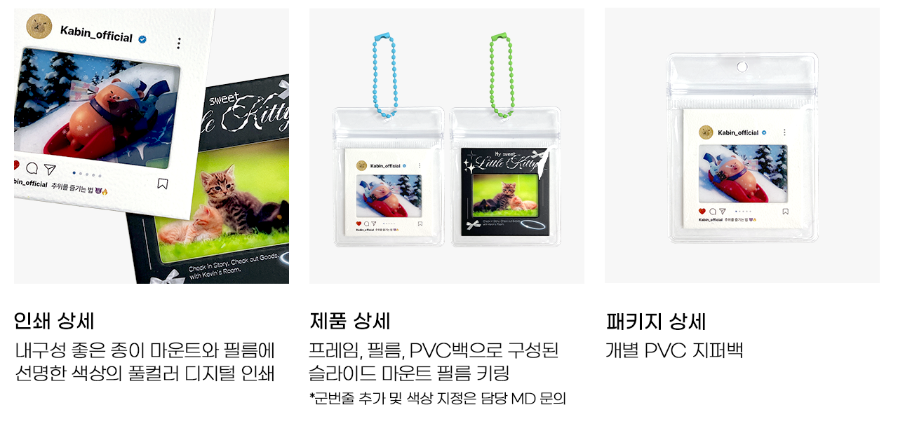 반투명한 유광 필름과 종이 마운트 프레임에 선명한 풀컬러 디지털 인쇄를 더해, 소중한 순간을 특별한 키링으로 만들어보세요.