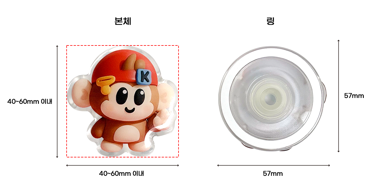 - 크기: 본체 40 ~ 60mm 이내 / 링 57 x 57mm