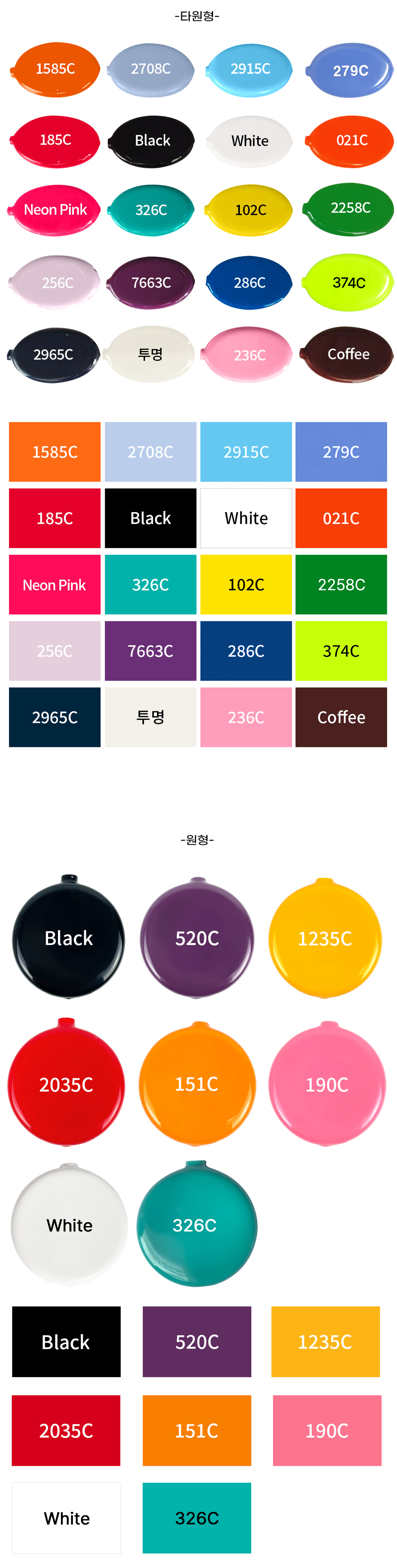 - 크기: (타원형) 80 x 50mm / 두께 12mm (원형) 60 x 60mm / 두께 12mm