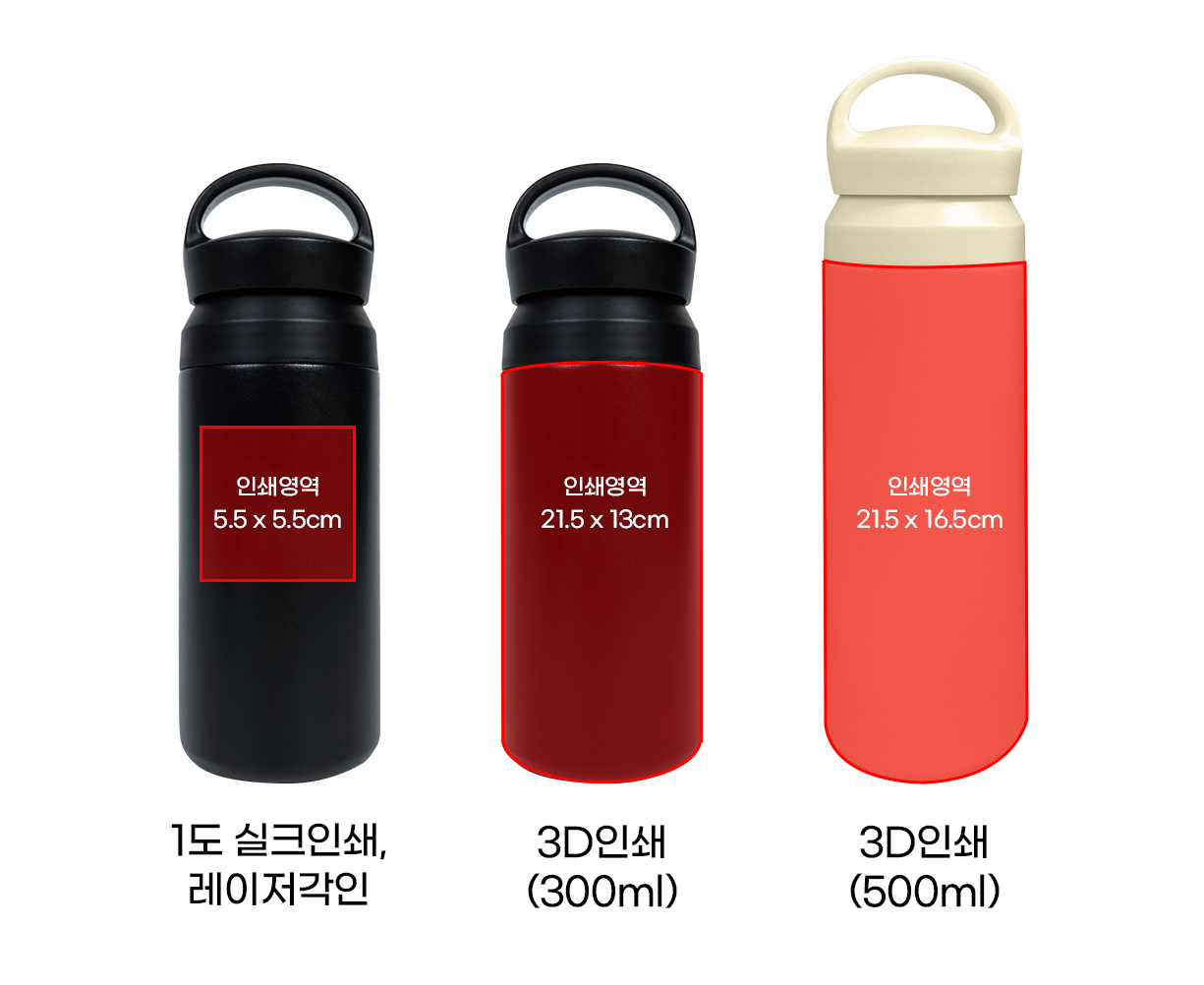 - 인쇄: 1도 실크인쇄 or 레이저 각인 or 풀컬러 3D인쇄