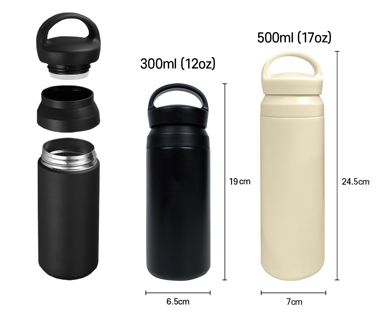 - 크기: 350ml (12oz) - 6.5 x 19cm / 500ml (17oz) - 7 x 24.5cm