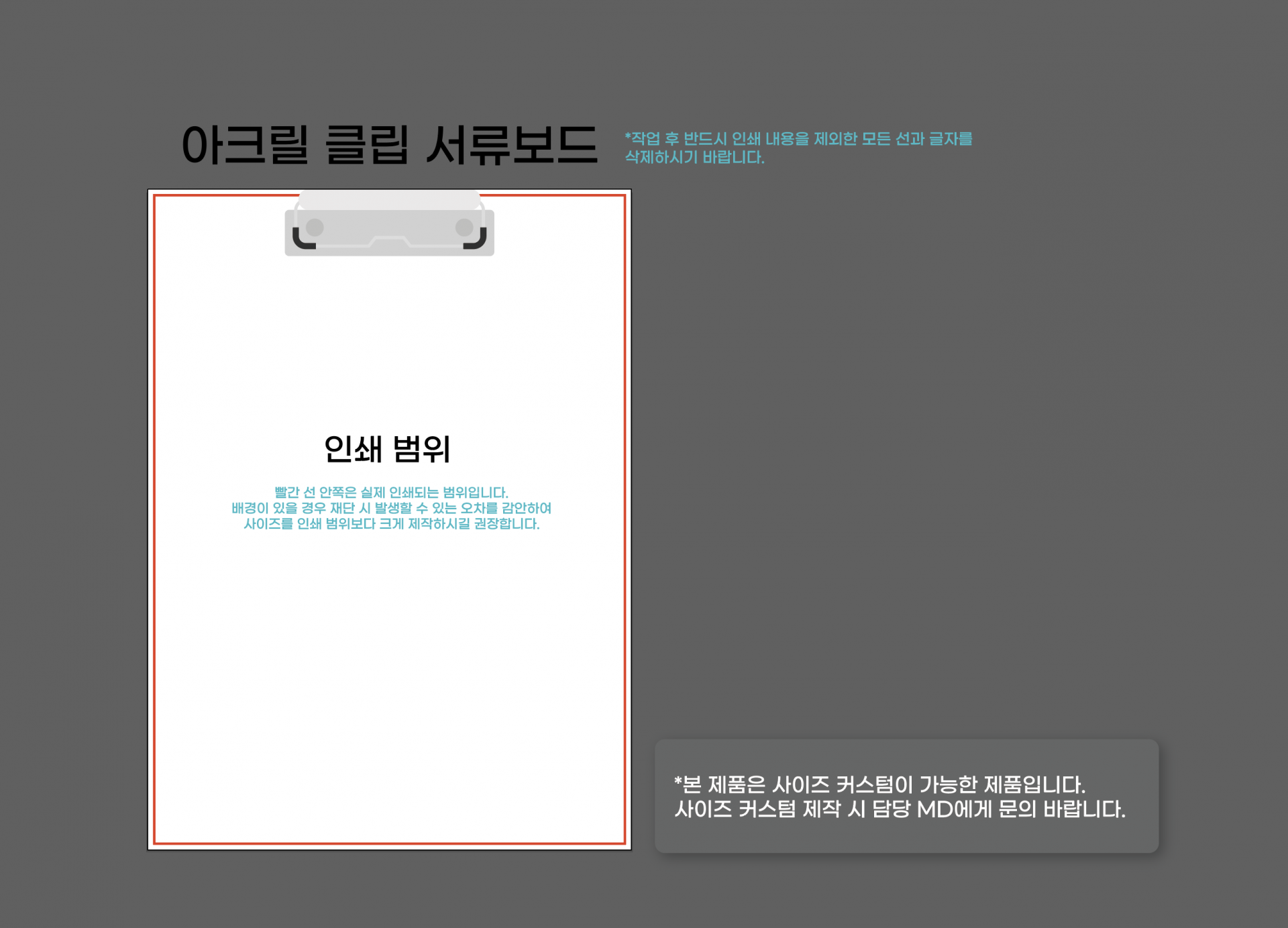 * 제공되는 작업사이즈는 기본형으로, 사이즈 변경 시 별도 작업하시거나 담당 MD와 상담하시기 바랍니다.