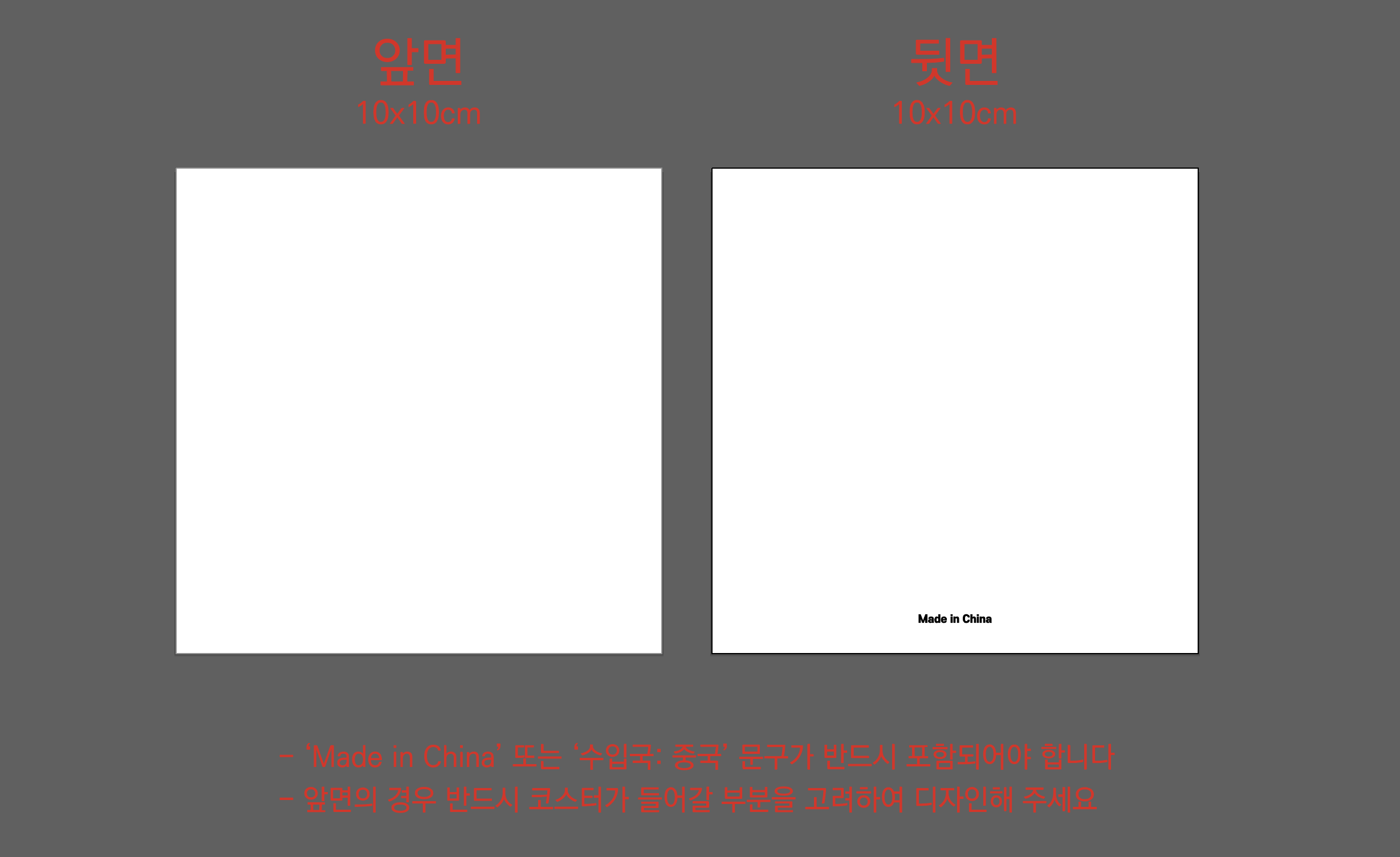 * 'Made in china' 또는 '수입국: 중국' 문구가 반드시 포함되어야 합니다
