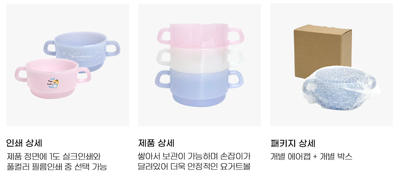 | 요거트볼 | 직경 100 x 높이 55mm | (실크인쇄) 140 x 37mm (필름인쇄) 100 x 37mm |